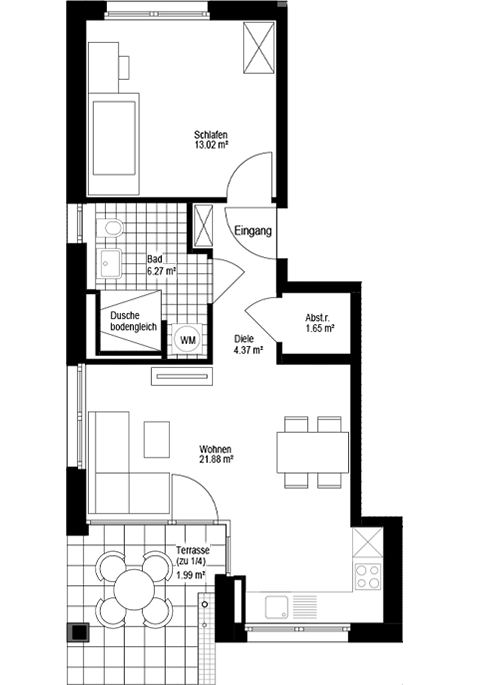 49,18 m² | 2 Zimmer | 1 Badezimmer